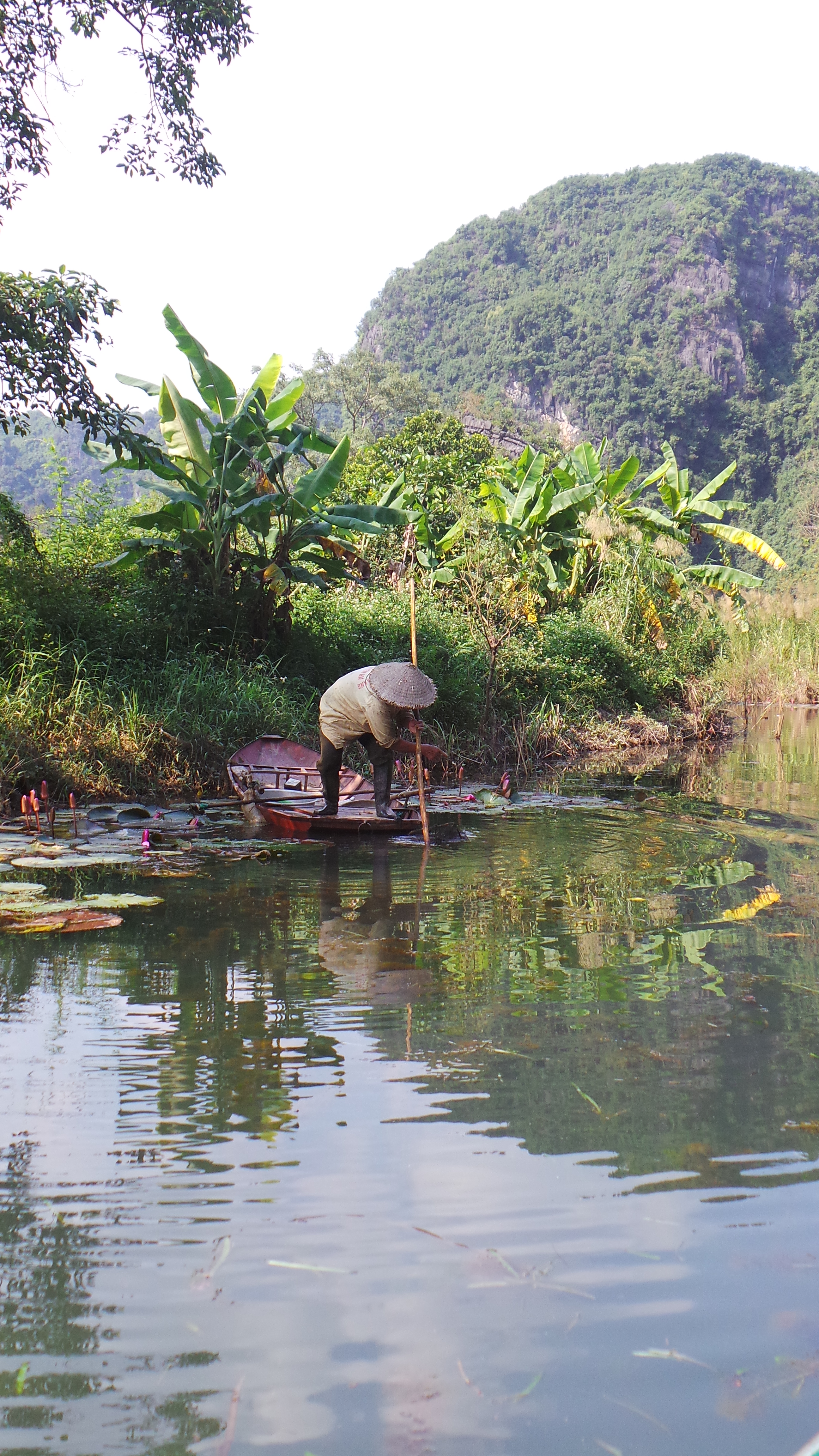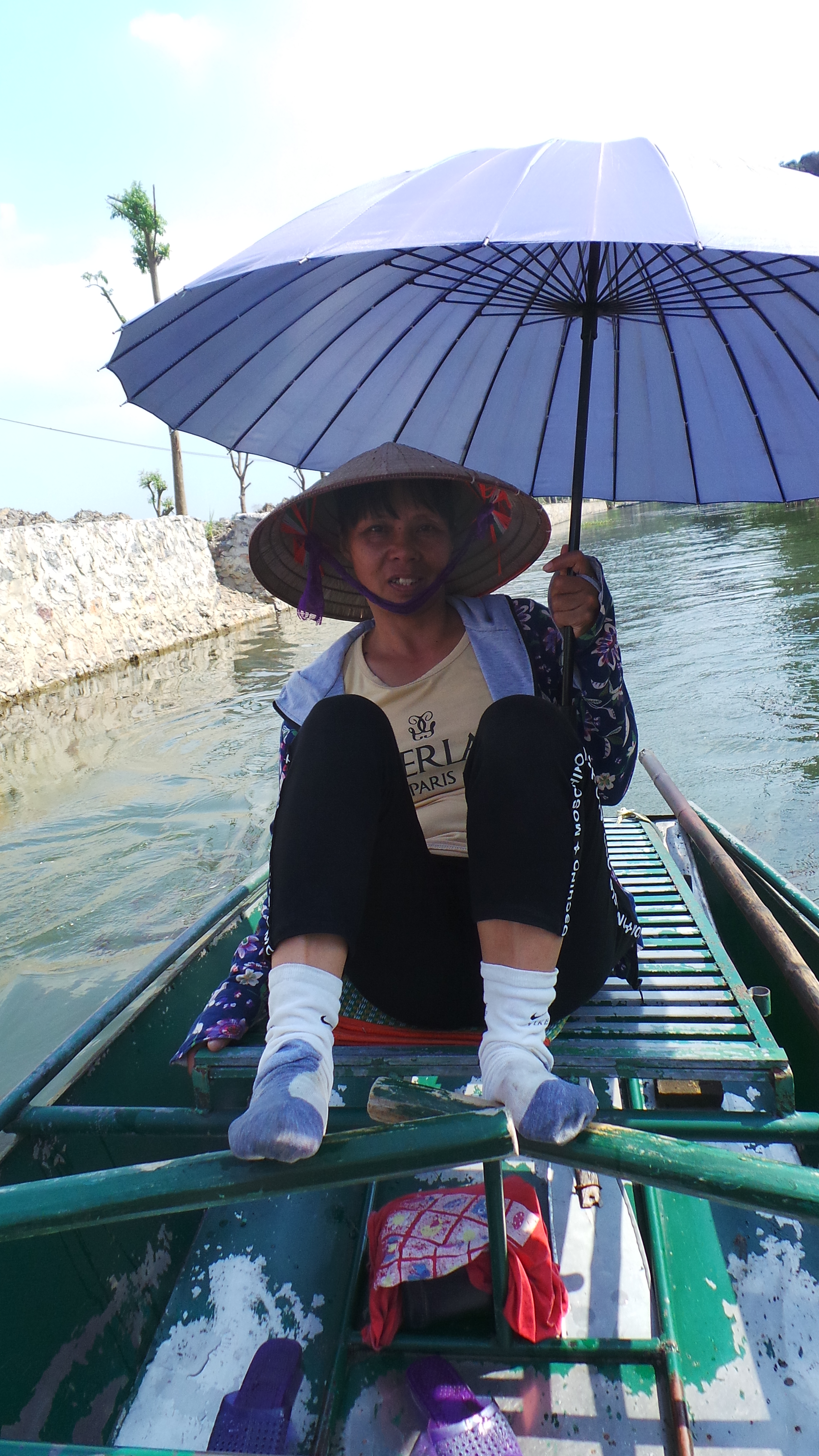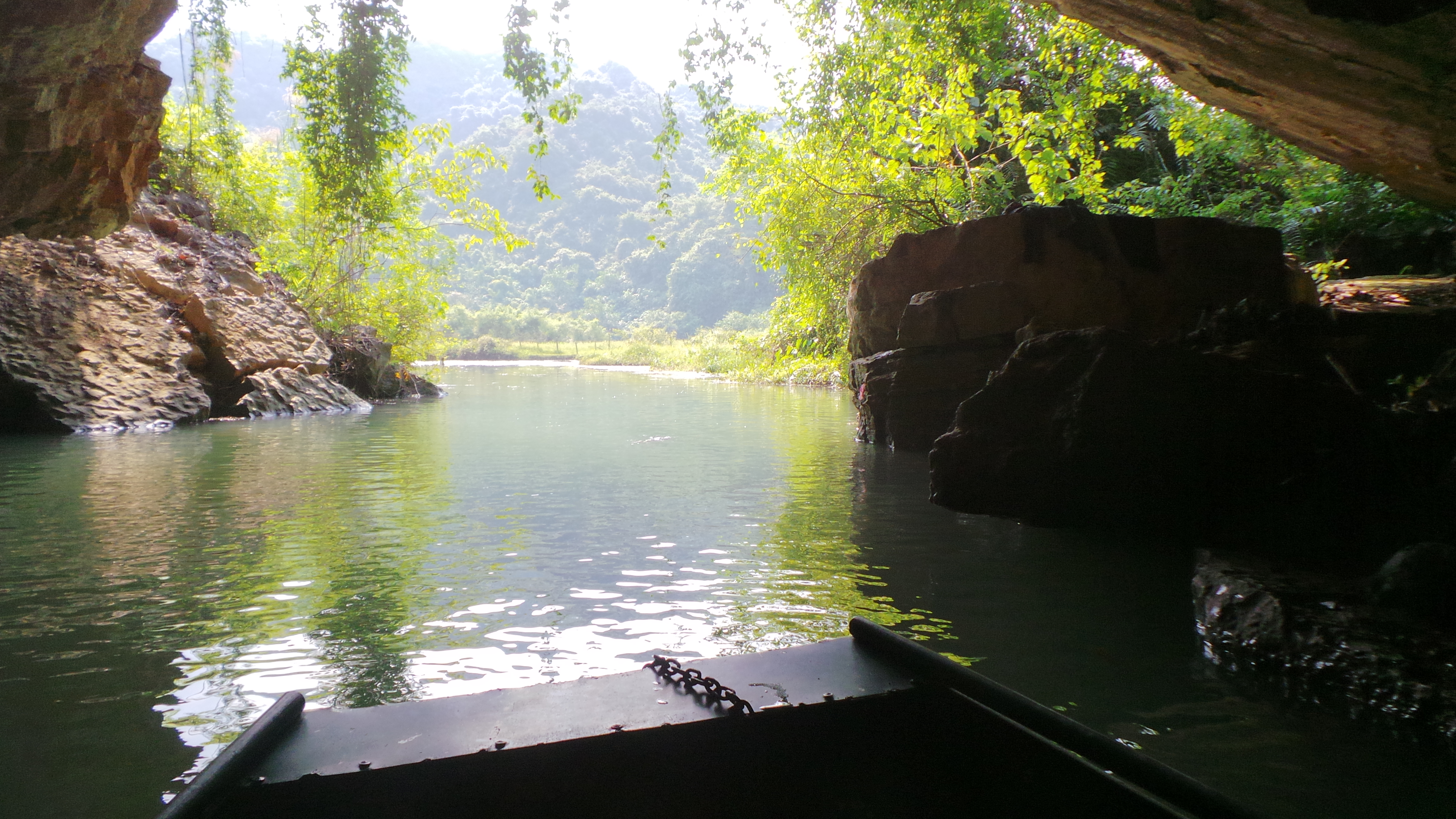 Au sortir d’une grotte sous laquelle la rivière circule près de Ninh Binh (par moment il fallait s’allonger tellement la voute était basse). Vietnam. Ph. Julia Vernier 2018.