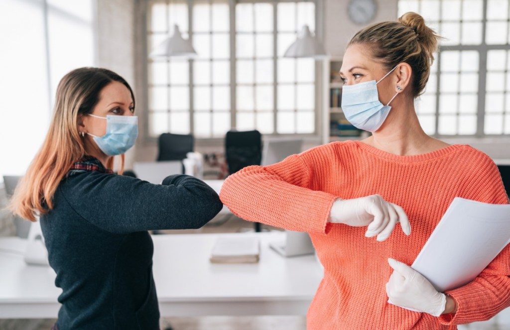 Après avoir bien réussi le petit examen obligatoire et m’être fait dûment inscrire pour ma présence sur le site, me voilà de retour au travail vendredi dernier. Dès l’entrée, j’aperçois un grand panneau rappelant les fameuses mesures barrières. Je dois impérativement porter un masque avant d’entrer. Le gardien, bien confiné derrière son plexiglass, coche mon nom sur la liste très limitée des volontaires du jour. Ensuite, je file à pied vers l’accueil où je dois impérativement me rendre. Sur le chemin, je croise des portes barrées et après avoir suivi un parcours fléché, j’arrive à destination. Là, j’apprends que je ne serai pas installée dans mon bureau habituel, mais dans un coin où ont été regroupés les quelques présents ce jour là. Après avoir passé mes mains sous un distributeur de gel hydro-alcoolique à pédale, je reçois comme un cadeau un kit de survie composé d’une dizaine de masques lavables ainsi que d’un petit flacon de solution désinfectante.