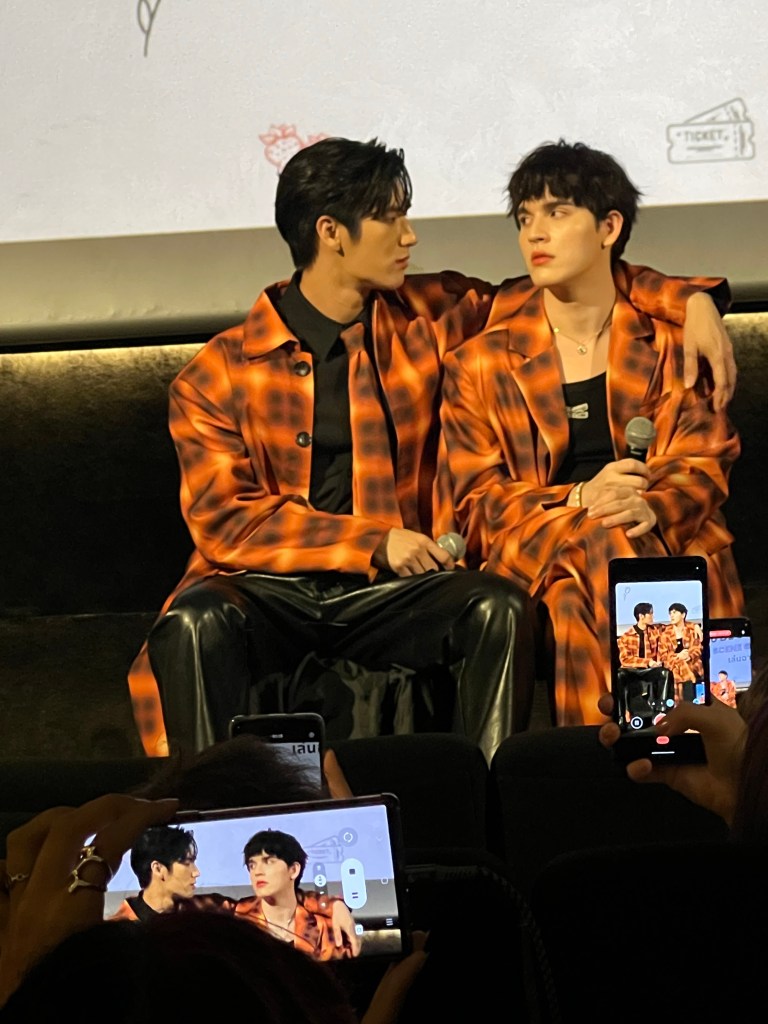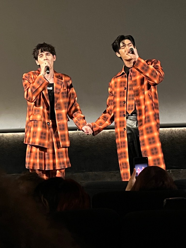 A l’issue de ce hors d’oeuvre musical plutôt réjouissant, le duo a été interviewé par l’animatrice sur leur personnalité, leur précédente série et leurs prochains projets communs. A cette occasion, ont été projetés les trailers de Big Dragon, de Big Dragon the movie ainsi que de SunsetxVibes. Il a été affiché par les acteurs que le film Big Dragon se situerait dans un registre plus romantique que la série. Quant à leur prochain drama BL qui devrait être diffusé en fin d’année 2023, Mos jouera un personnage plus mature puisqu’il a indiqué que lui, qui n’a en réalité que 21 ans, camperait le rôle d’un trentenaire. Quant à ISBANKY, il a précisé que son personnage ne sera pas très futé et plutôt attiré par les hommes plus âgés (comme par hasard). J’espère ne pas écrire trop de bêtises, car j’étais parfois distraite par les photos que je publiais en parallèle sur Twitter.