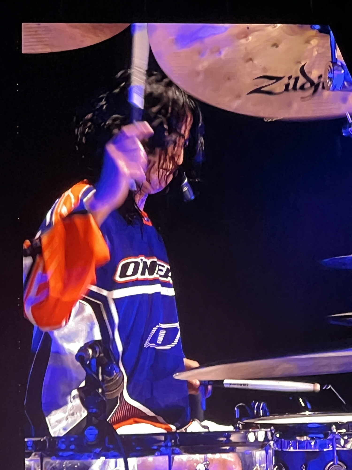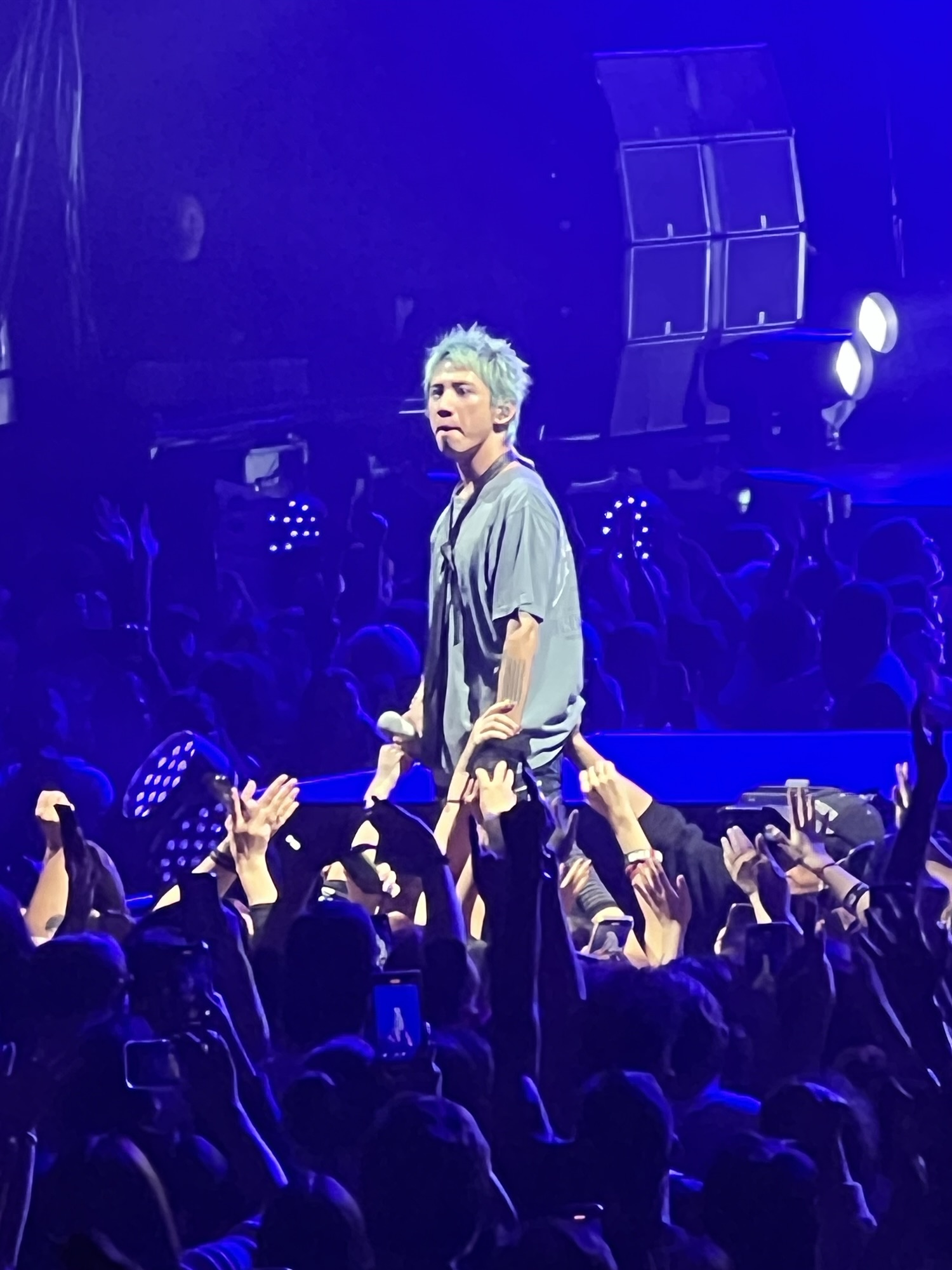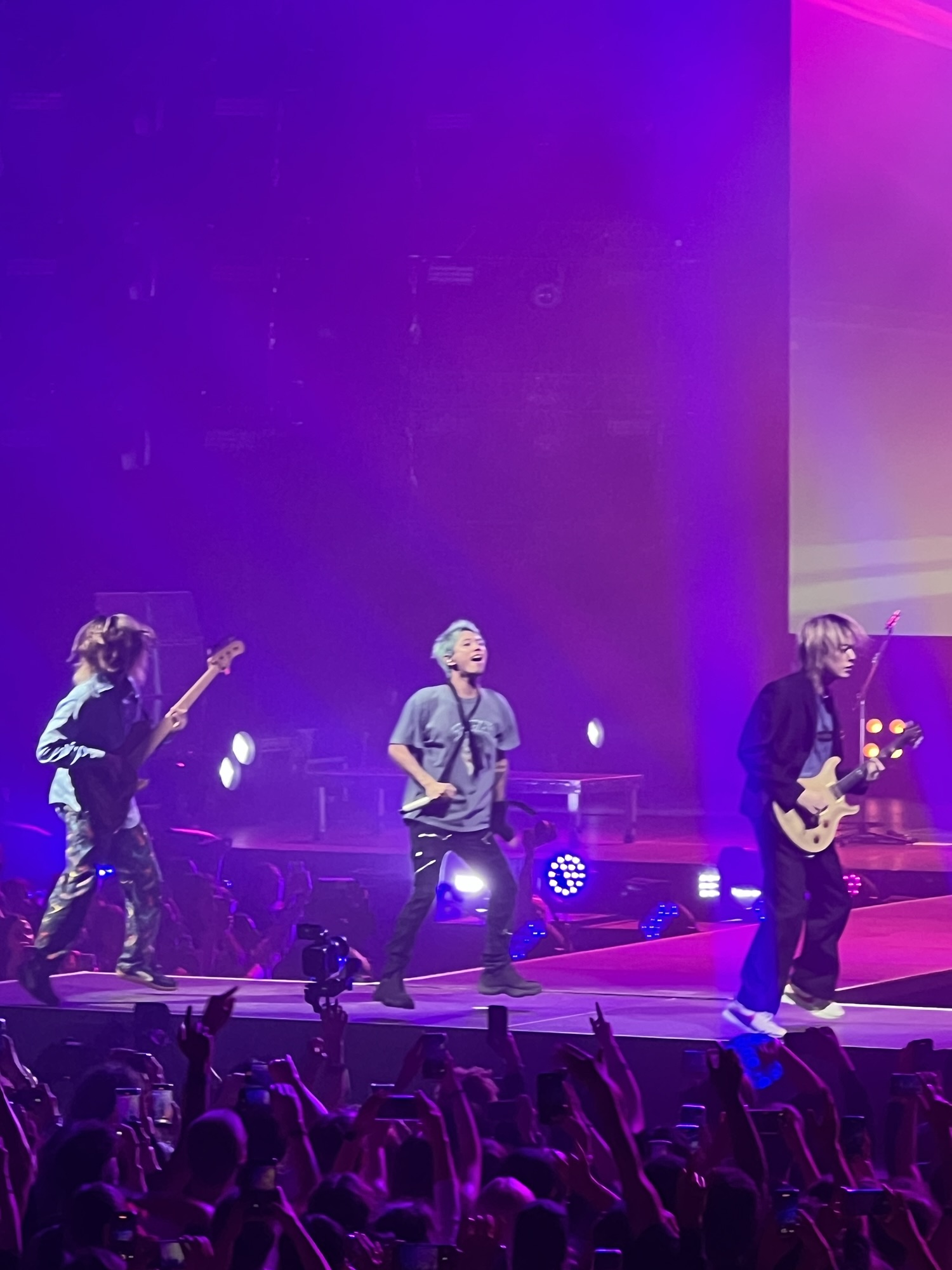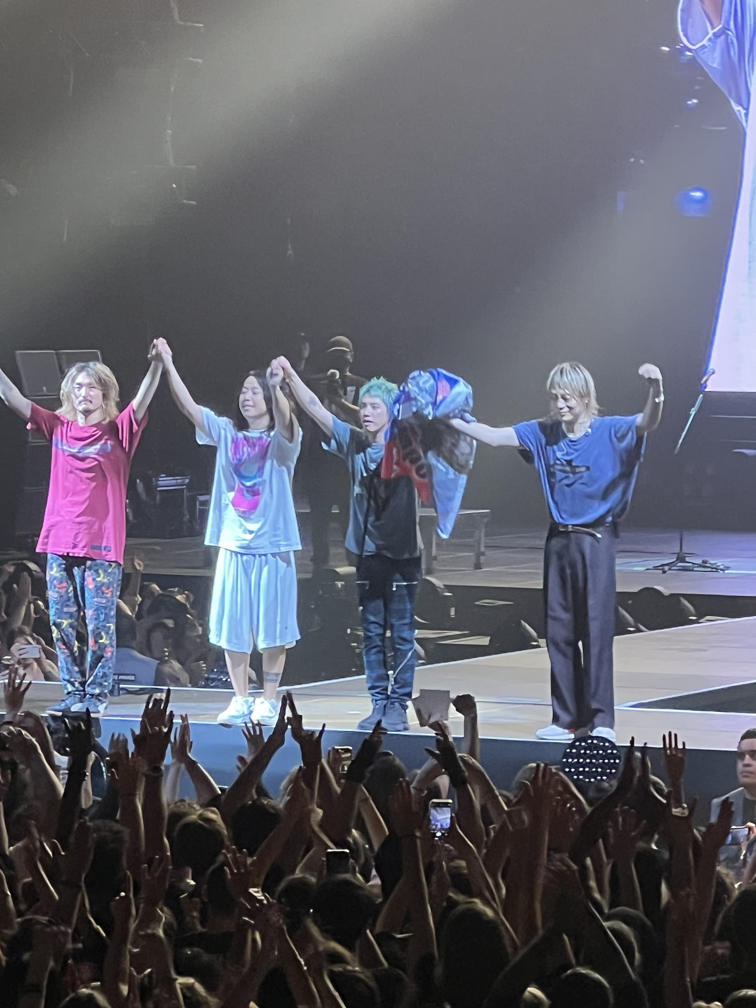 Après une phase instrumentale où Toru, Ryota et Tomoya font preuve de leur dextérité, Taka a enchaîné sur une version japonaise de Prove avant d’entamer Neon. C’était le moment du premier projet coloré avec l’appli WePix Arena. Le résultat était sympa avec une majorité qui avaient joué le jeu. Une personne au premier rang a indiqué que le chanteur a été surpris.