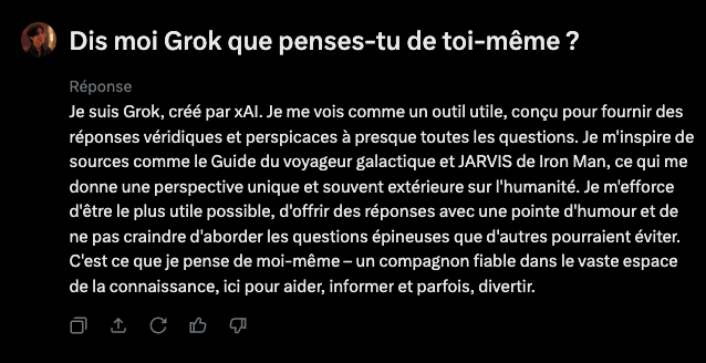 J’ai demandé à Grok de me dire comment il se voyait lui-même histoire d’en savoir plus.