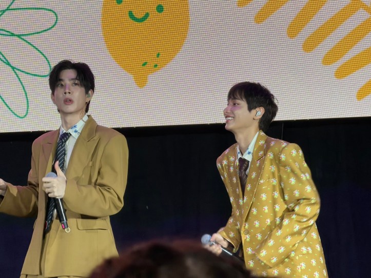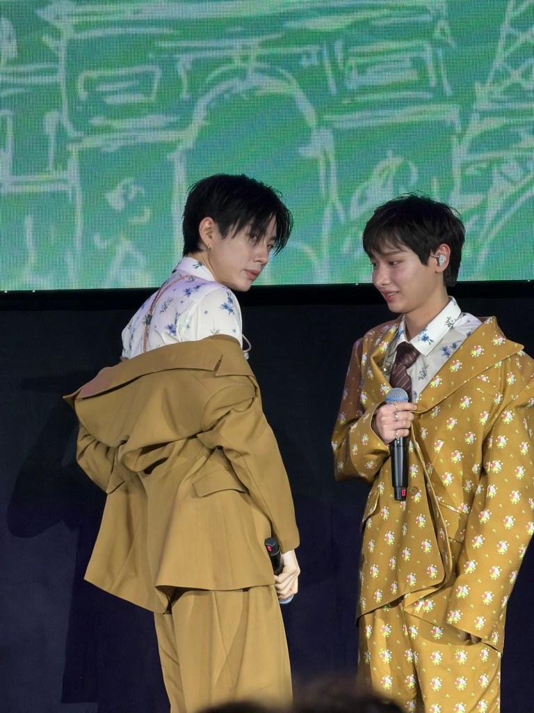 Gun, un peu timide au début en bon introverti, s’est peu à peu lâché à mesure de l’avancée du show. Ils ont notamment particulièrement apprécié l’ambiance de la salle. Off a redemandé notre Popolopopoo et a questionné autour de sa signification.