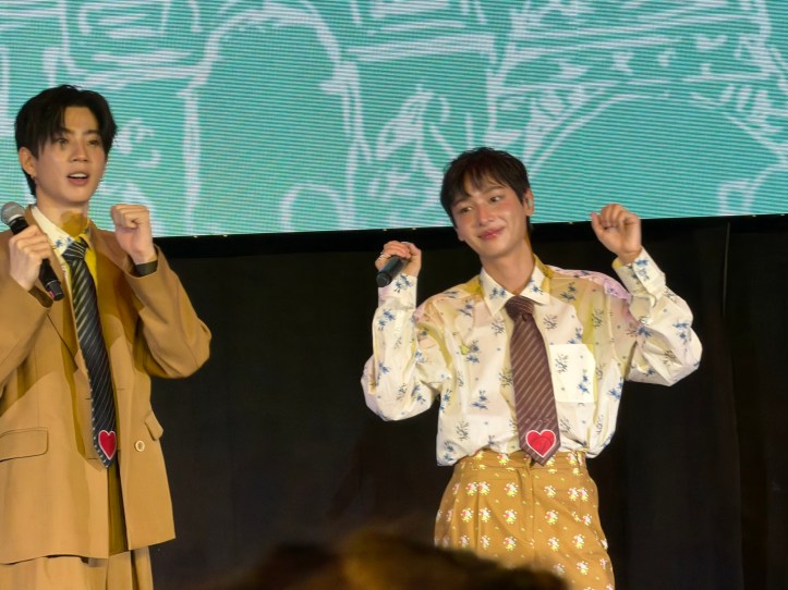 Gun a indiqué que c’était sa première fois à Paris alors que Off était déjà venu pour la Fashion week. Ils ont ensuite évoqué Burn out et le fait que la série serait probablement diffusée fin novembre. Gun a précisé en rougissant comme une petite fille qu’il y aurait des scènes « osées ». Avec Nuchy à la réalisation, on peut le croire, même si ça reste une production de GMMTV.