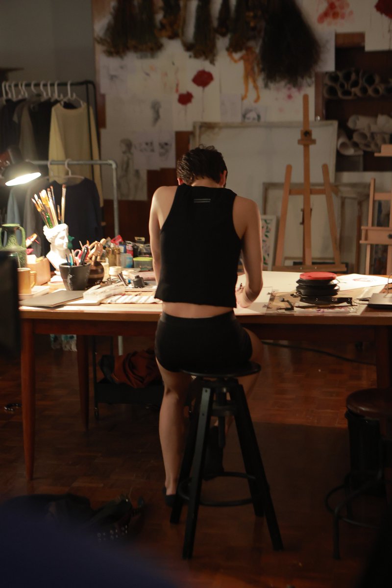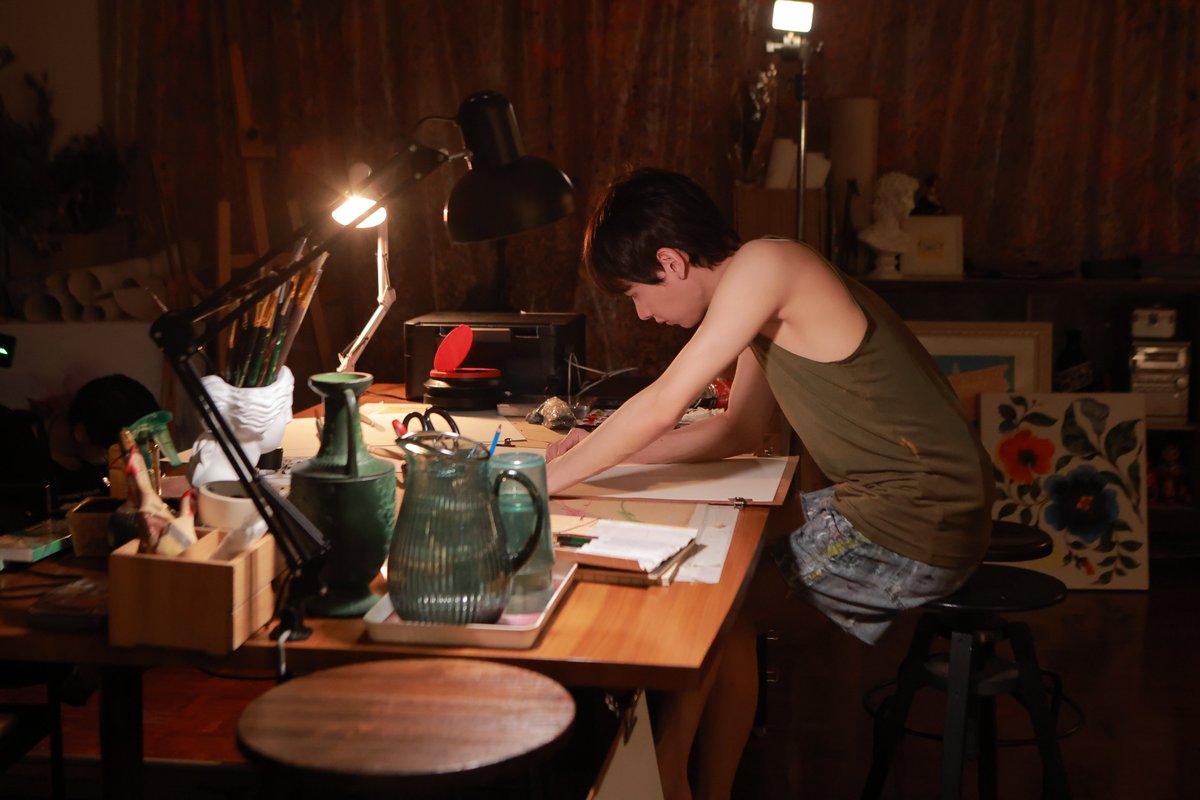 Les images sont léchées avec des contrastes, des couleurs de néons autour du Burnout bar qui renforce le côté artificiel des rencontres. L’appartement de Jira a aussi ses propres tonalités, ainsi que celui plus froid de Koh. Mais ce que j’ai préféré c’est la façon de filmer Jira en train de dessiner et peindre, comme si on entrait dans son processus de création artistique. Elle a trouvé une peintre en la personne de Naisu qui a produit des oeuvres magnifiques pour cette série. Evidemment, on pense à Yok dessinant dans Not me. Et c’est vrai que dès qu’on me met des artistes dans une série, je suis de suite embarquée.